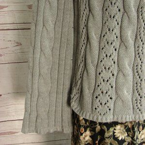 Lt Gray Cable Knit Flare Sleeve Cardigan Sweater L