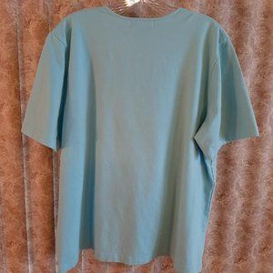 EUC short sleeved scoop neck tee in light aqua. Size is 18/20 and material is 95% cotton 5% spandex.