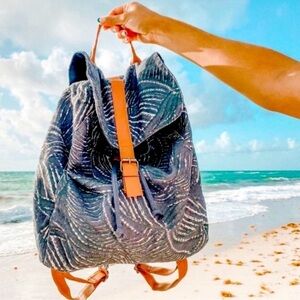 The interior pocket keeps your phone handy and the drawcord closure with magnetic snap keep all your items snug and secure. Fully lined with cotton voile with adjustable back straps.
