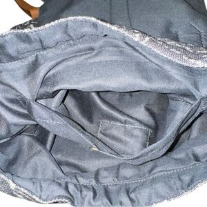 Elevate your everyday carry with this Lu & Elle Paradise Palm backpack, crafted in structured gray canvas with a palm-inspired print and tan vegan leather accents. Designed for both style and function, it includes a built-in card holder, roomy interior, and adjustable straps. One strap has been re-tied due to the original knot coming undone—see photos for detail. New with tags and ideal for travel, school, or on-the-go errands with a minimalist aesthetic.