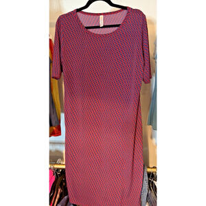 Dress to impress with this vibrant LuLaRoe shift dress, a versatile addition to any wardrobe. Tailored for a comfortable, regular fit in a size large, this knee-length piece features a playful round neckline and short sleeves, perfect for transitioning from spring to summer and into fall. Its pullover closure ensures easy wearability for any casual occasion. Crafted from a soft polyester knit fabric, this dress boasts an array of delightful features, including convenient pockets for practicality. The dress's multicolored design radiates a cheerful vibe, making it an ideal choice for those looking to infuse some color into their everyday style. Proudly made in China, this dress is not just a fashion statement, but a testament to effortless elegance.