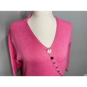 Lu Lu B pullover sweater pink v neck loose fit button detailing 100% cotton Sz M