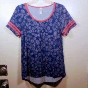Lu la Roe Blue floral print short sleeve Top Size: M