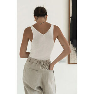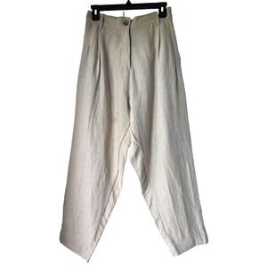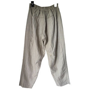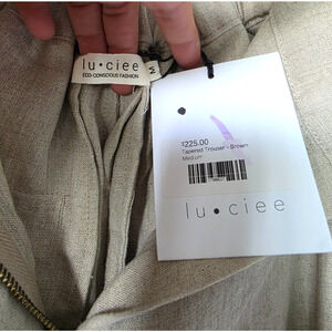 Lu●Ciee Tapered Suiting Linen Trouser in Natural Brown (they look tan but the official color is Natural Brown) - they're a size Medium and are new with tags. Wide leg, almost barrel-like and then narrows at the ankle. $225 MSRP