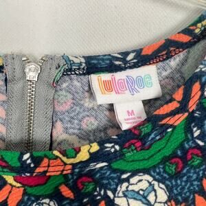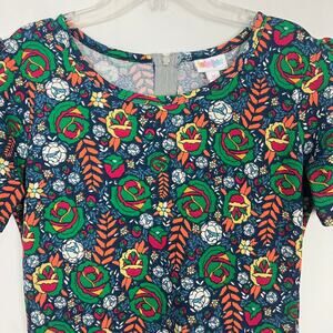 LuLaRoe A-Line multicolor floral dress. Round neck. Short sleeves. Exposed zipper in back. Midi length. Stretch. Unlined. In good used condition. No stains, tears or holes.