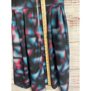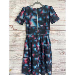 LuLaRoe Amelia Blue Red Black & White Striped Zip Back Knee Length Dress sz Med