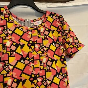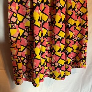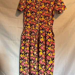 The dress features handset box pleats, giving the dress a flowing, full skirt. Has a zipper in the back and pockets.