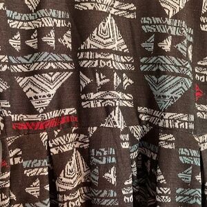 The dress features handset box pleats, giving the dress a flowing, full skirt. Has a zipper in the back and has pockets.