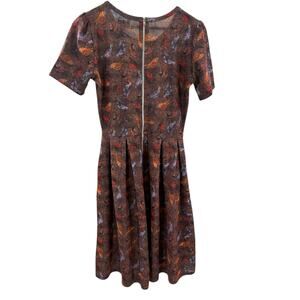 LuLaRoe Amelia dress in women’s size large featuring a fun and whimsical bird print. This flattering fit & flare style includes a hidden back zipper, soft stretch fabric, modest neckline, pleated skirt, and best of all—pockets! Great for work, church, or casual wear.