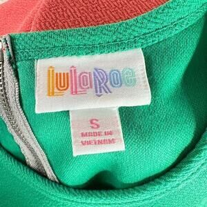 Step into vibrant style with this LuLaRoe knee-length dress, a perfect blend of comfort and flair. Showcasing a chic pleated design with a bold color block pattern in shades of green, this S size dress is a fashion-forward choice for any occasion. Crafted from a smooth blend of polyester and spandex, it promises ease of movement and a flattering silhouette. Ideal for the modern woman, this dress is also machine washable, ensuring effortless care. Make a statement and turn heads with this eye-catching ensemble.