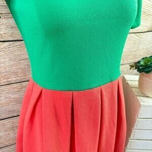 LuLaRoe Amelia Dress Small Green Color Block Pleated Knee Length Women's