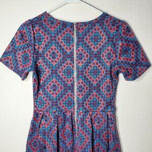 LuLaRoe Amelia Women's Dress Geometric Print A-Line Dress Medium Pleated Pockets
