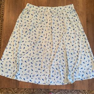 LuLaRoe • Aqua & Blue Nautical Large Anchor Marsha Midi Skirt • Size XL • EUC