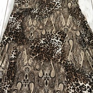 Super comfortable A-line skirt. Soft, slinky material. GORGEOUS pattern. EUC, only worn a few times. No defects.