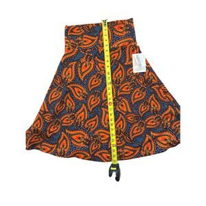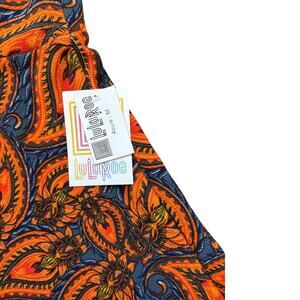 Brand new LuLaRoe Azure Skirt in size Medium. Features a vibrant orange and black paisley floral print with hints of deep navy for contrast. The Azure is a classic A-line skirt with a wide fold-over waistband and a knee-length hemline (approx. 25” )