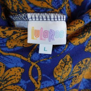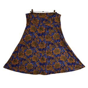 LuLaRoe Azure Skirt Women Size Large Floral Blue Orange Stretch Flowy A-Line AOP