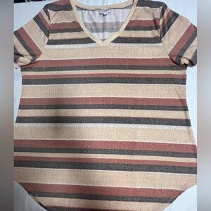 LuLaRoe BROWN/RUST/TAN SIMPLY COMFORTABLE T SHIRT SIZE 2XL. SOFT POLY/SPANDEX
