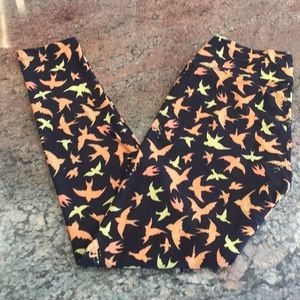 Stylish LuLaRoe leggings. Features vibrant bird pattern. Perfect for casual wear.
