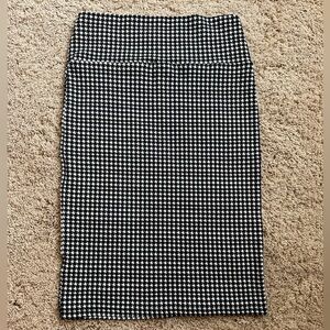Stylish pencil skirt with a classic pattern. Perfect for versatile wear. Very stretchy, size small. Last picture shows that this pencil skirt is slightly longer than the other one I have listed.