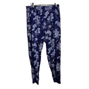 LuLaRoe Blue Floral Print High Rise Athleisure Jogger Pants Womans Size Large