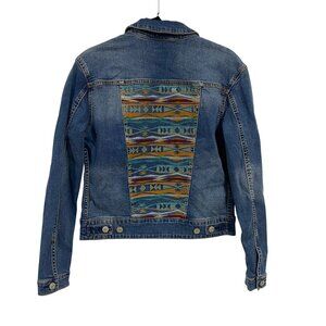 LuLaRoe Blue Harvey Denim Southwest Print Embroidered Jean Jacket Size XS