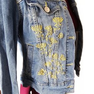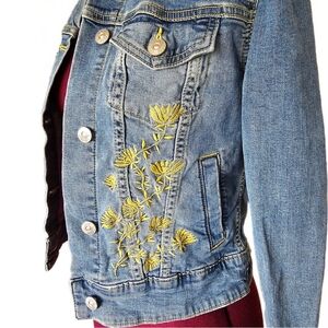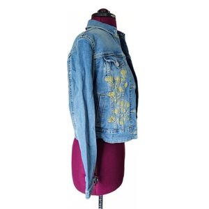 LuLaRoe Blue Jean Jacket with Yellow Floral Embroidery