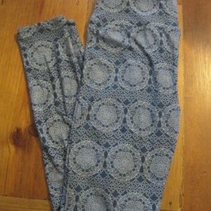 Brand new, never worn Lularoe leggings. Light slate like blue with white lace pattern. Feel free to ask questions, bundle or make offers. Thanks for looking!