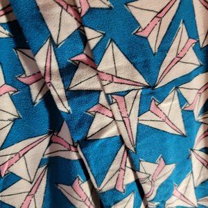 LuLaRoe Blue Pink Paper Airplanes Geometric Print Leggings OS