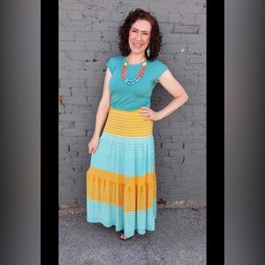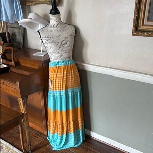 LuLaRoe Blue and Orange Poppy Pleated Maxi Skirt NWT