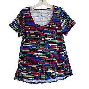 LuLaRoe CLASSIC TEE Blue Red Children Pattern Short Sleeve Size SMALL