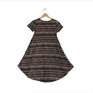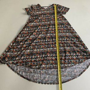 LuLaRoe Carly Dress Floral Flower Chevron Stripe Stretchy Size XXS High-Low Hem.