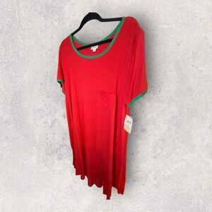 LuLaRoe Carly Dress - Size 2XL Solid Red With Green Trim