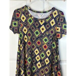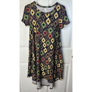 LuLaRoe Carly Dress Women's XXS Bright Multi High-Low Hem Easy Care Comfort