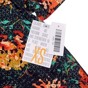 LuLaRoe Carly Dress XS Floral Black Orange Yellow Green High Low A-Line Swing