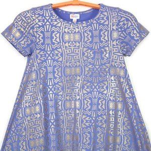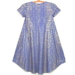 LuLaRoe Carly Elegant High Low Swing Dress Purple Gold