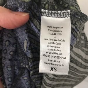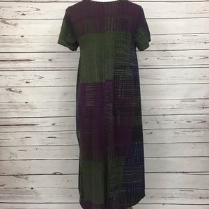 LuLaRoe Carly Green, Purple, and Black Print Sz XS