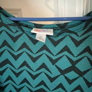Stylish high low dress by LuLaRoe. Features a teal and black zigzag pattern. Perfect for casual outings.