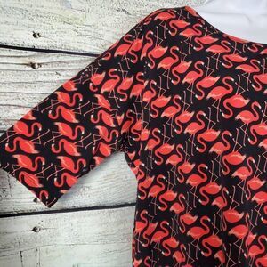 LuLaRoe Carly Dress S Black Red Flamingo Print High-Low Hem Short Sleeve Simply