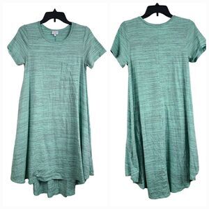 LuLaRoe Carly Dress XS (2/4) Mint Space Dye Soft Knit Swing Midi Pocket Hi-Low