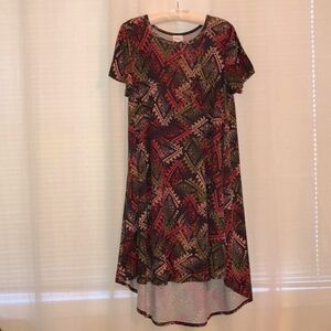 LuLaRoe Carly M Black Red Green Nude Short Sleeve High Low Dress