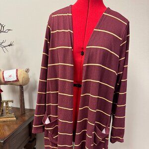 LuLaRoe Caroline Cardigan Maroon and Gold stripe Harry Potter Gryffindor size L