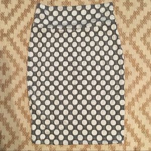 Silvery-gray Cassie with polka dots. Fabric is a little slinky with more give than other Cassie skirts.