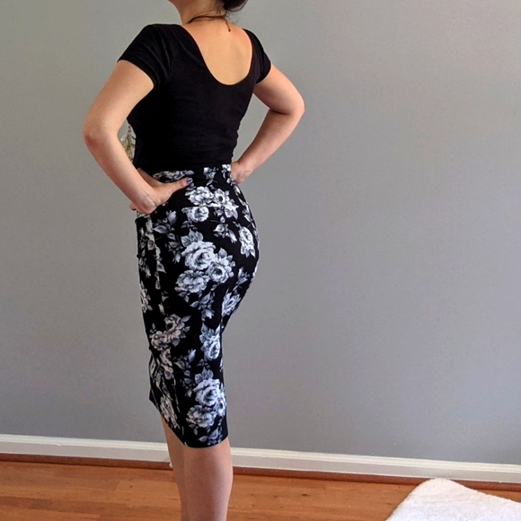 LuLaRoe Cassie skirt in excellent condition, never worn by me (second owner) and possibly never worn by its first owner. Stretchy and so comfortable--you could dress it up and seriously feel like you're wearing pajamas. Black and white graphic floral print, super versatile, size small. 96% spun polyester, 4% spandex. Happy to answer questions and PLEASE make offers and bundle! I have one other LuLaRoe Cassie as well, equally excellent condition.