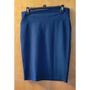 LuLaRoe Cassie Pencil Skirt Navy with Orange Dots