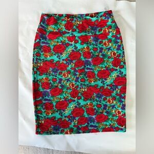 LuLaRoe Cassie Red and Blue/Green Floral Pencil Skirt