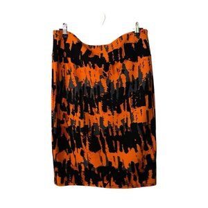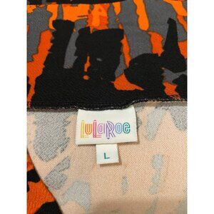 LuLaRoe Cassie Skirt in a size large. Really good condition. Laying flat waist 18in. Length is 25in. Orange, black and gray colors.