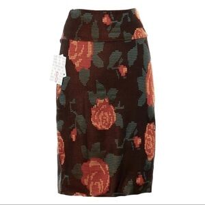 LuLaRoe Cassie skirt small floral stretch pencil bodycon autumn brown NWT retro rose print work casual