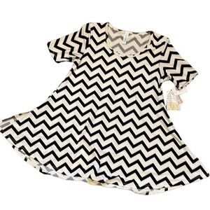 LuLaRoe chevron black and white print. The perfect T. New with Tags. Size XXS. P2P 17”. Length 30”.