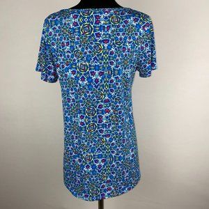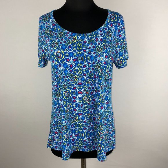 LuLaRoe Classic T S Multicolor Blue Yellow Red White Patterned Top Casual.