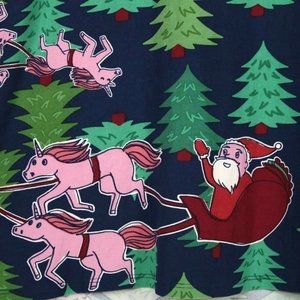 LuLaRoe Classic T Shirt Top Christmas Pink Unicorns Santa Sleigh Blue XL